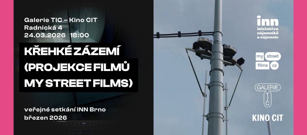Projekce krátkých filmů, které vznikly (nejen) v rámci brněnského workshopu My Street Films, zachycuje město v pohybu: domy, které mizí, čtvrti, jež se proměňují, i generaci hledající své místo mezi nájmem a nejistotou. Snímky otevírají témata domova, křehkosti zázemí i proměn městského prostoru a vytvářejí prostor k debatě o tom, komu dnes město patří a jak v něm lze důstojně bydlet. ![]()