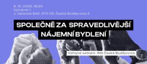 - INN České budějovice: SPOLEČNĚ ZA SPRAVEDLIVĚJÍ NÁJEMNÍ BYDLENÍČeskobudějovická buňka Iniciativy nájemníků a nájemnic zve na benefiční akcí na podporu členstva, které čelí nespravedlivému a agresivnímu pronajímateli.